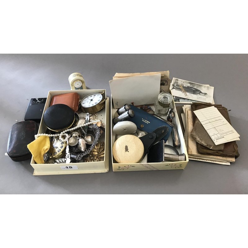 Qty of Collectables to Include Miniature Clocks and Silver Dish, Silver Spoons etc