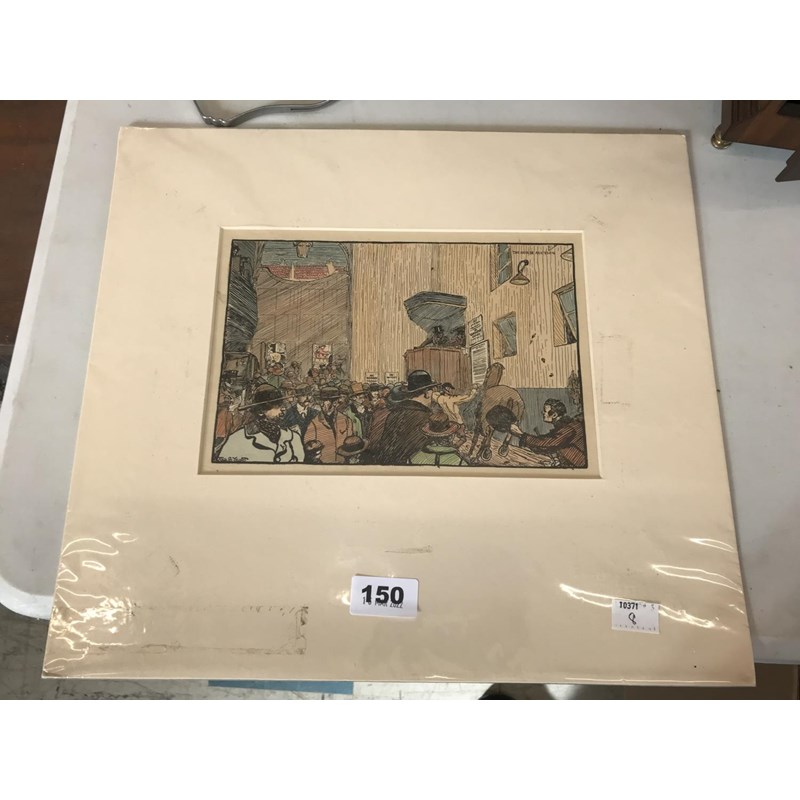 Jack Butler Yeats, The Horse Auction, Colour Woodcut, Cuala Press