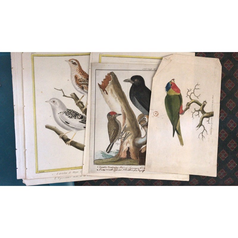Six 18thC Unframed Coloured Etchings of Birds (English, French & German)