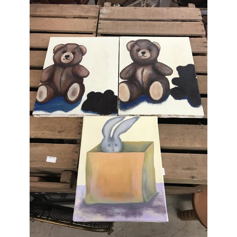 Kate Corder, `Bear Necessities I & 2`; and `Boxed Bunny`, 1988-1998, Three Oils on Canvas, unframed