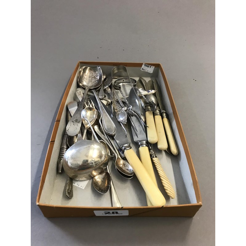 Plated Ware and Silver Tablespoon, Two Pairs of Silver Sugar Tongs and Pickle Fork etc