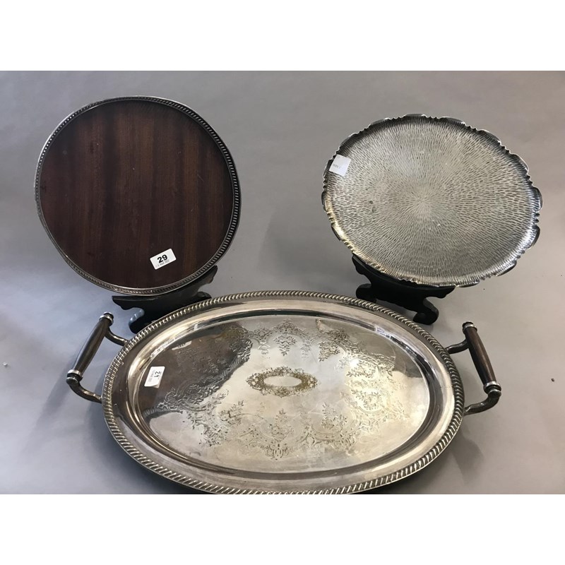 Plated Oval Two Handled Tray, Textured Tray and Gallery Tray (3)