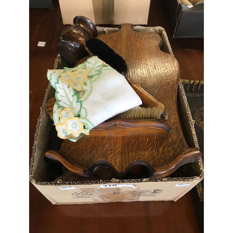 Box of Assorted Woodware, Barley Twist Candlesticks etc