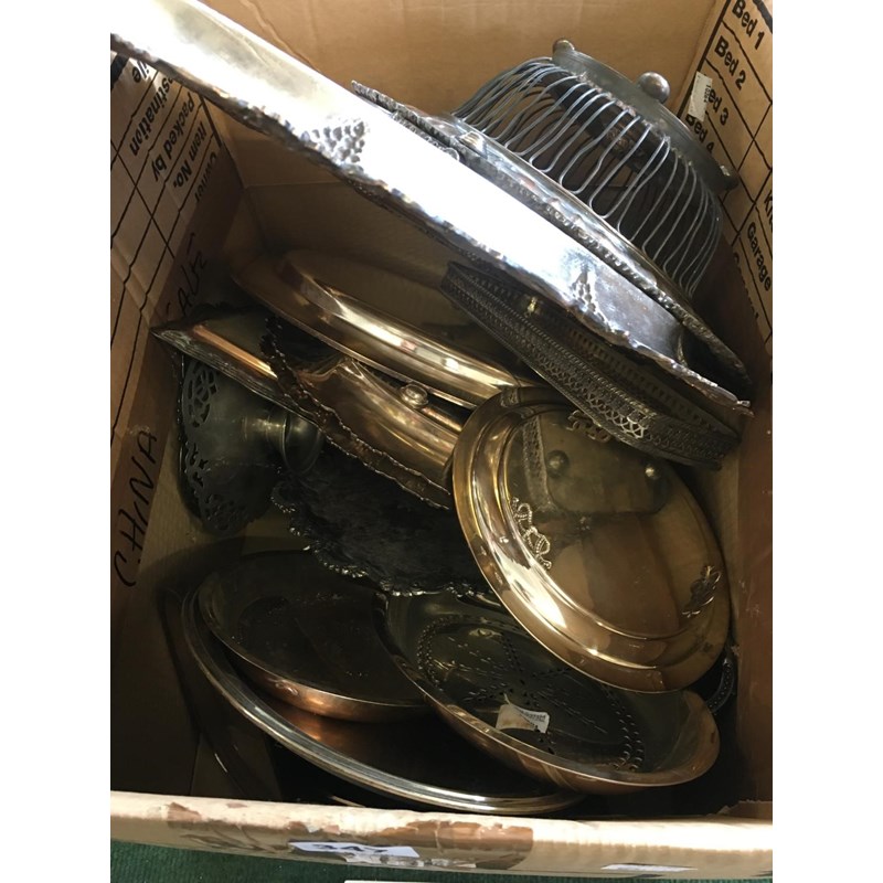 Box of Silver Plated Trays etc