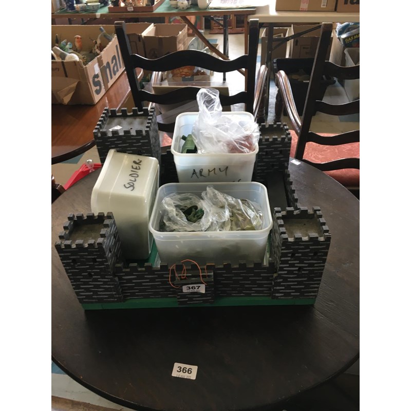 Wooden Fort with Assortment of Soldiers, Army Vehicles and Cowboys and Indians