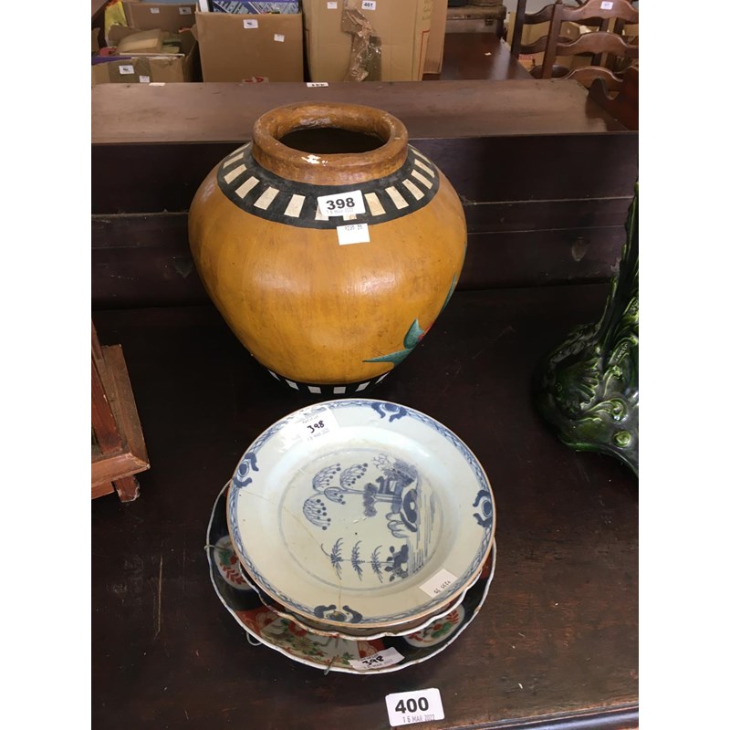 Two Imari Style Plates Blue and White Plate and Papier Mache Urn