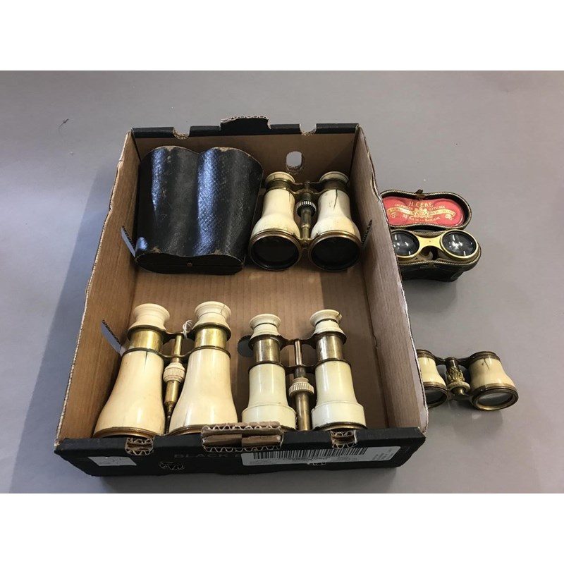 Cased Ivory Binoculars with retail labels, and Three Other Pairs of Ivory Binoculars