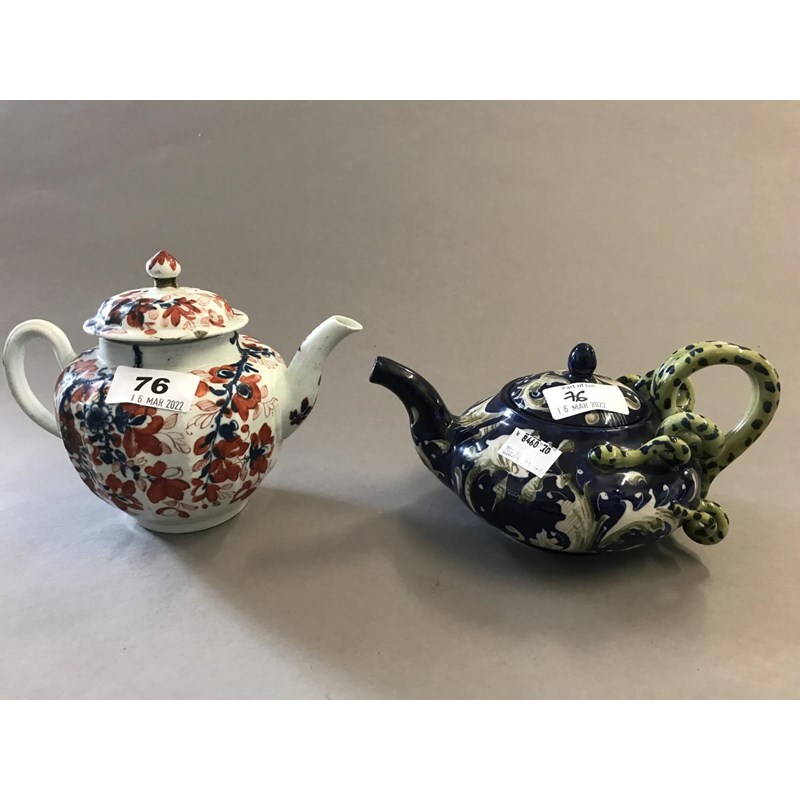 18thc English Porcelain Teapot, and a Continental Teapot - possibly Italian
