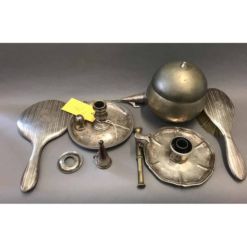 Two Silver Dressing Table Items, Candle Snuffers etc