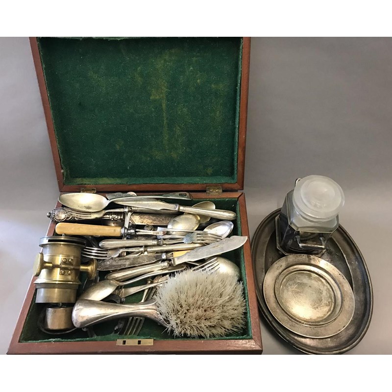 Box of Assorted Plated Ware including Silver Handled Cutlery etc