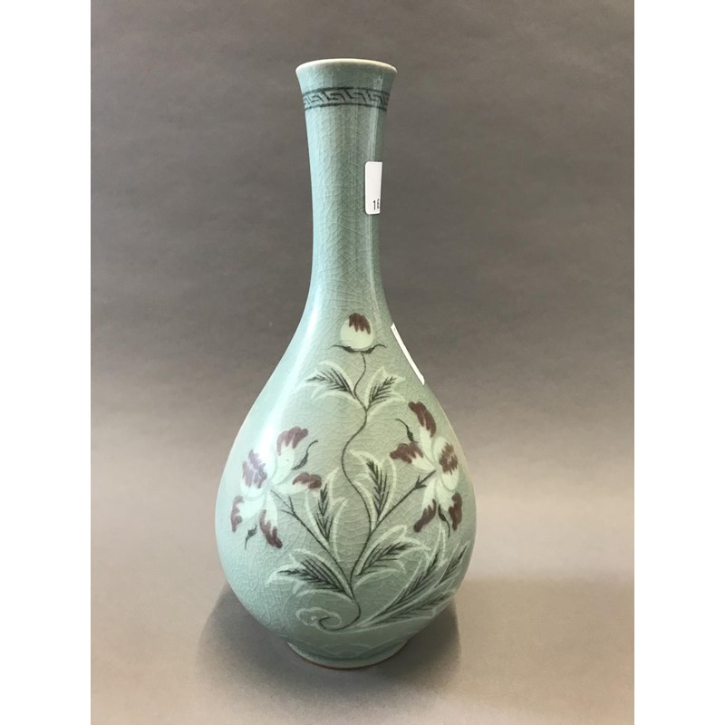 Oriental Green Glazed Bottle Vase, possibly Korean