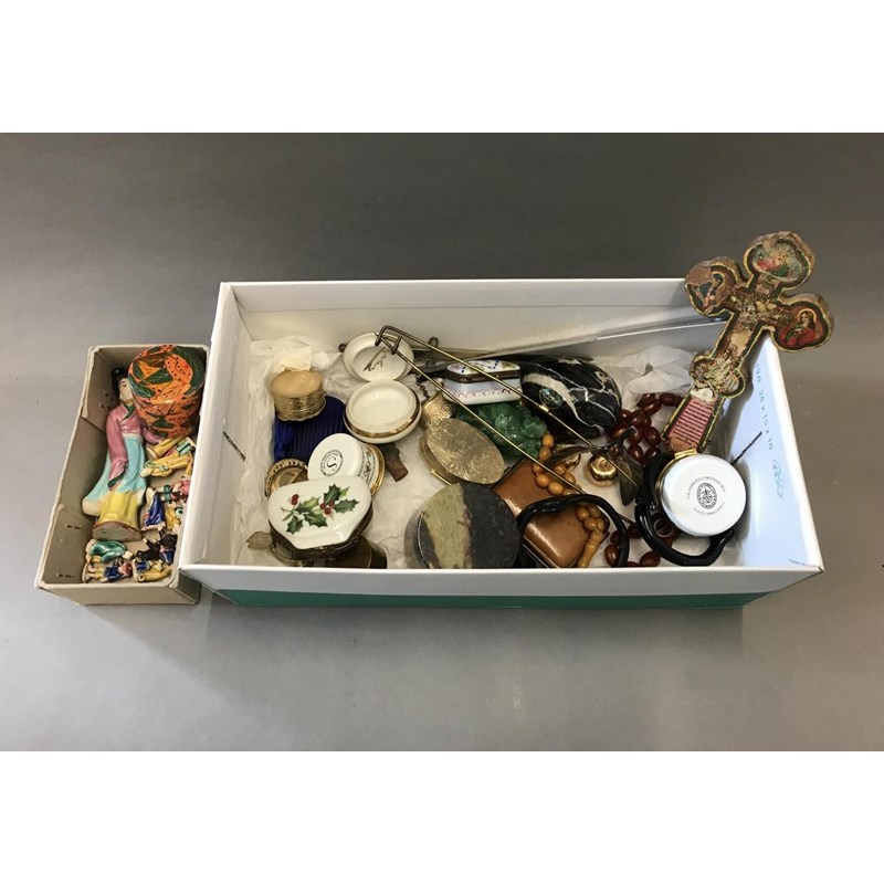 Mixed Lot of Collectables: Chinese Figures, Boxes, Beads etc