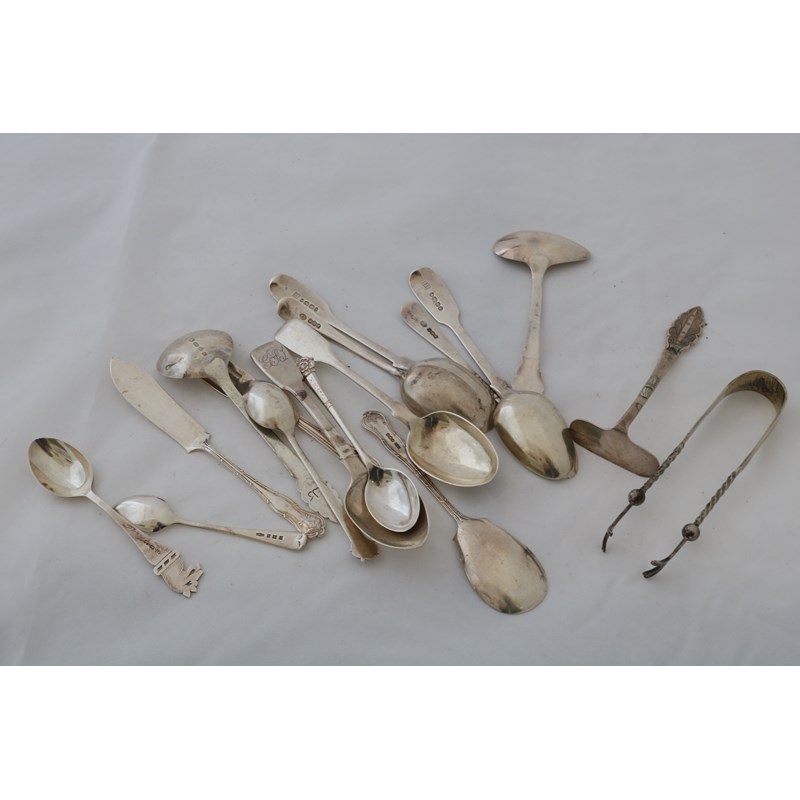 Small Quantity of Silver Spoons and a Pair of Sugar Tongs