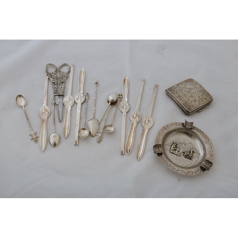 Silver Cigarette Case, Ashtray, Lobster Picks etc