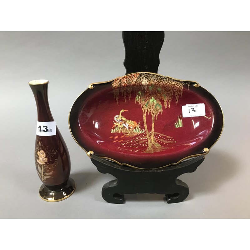 Carltonware Royal Rouge Dish and a Spill Vase, Height of Vase 20cm