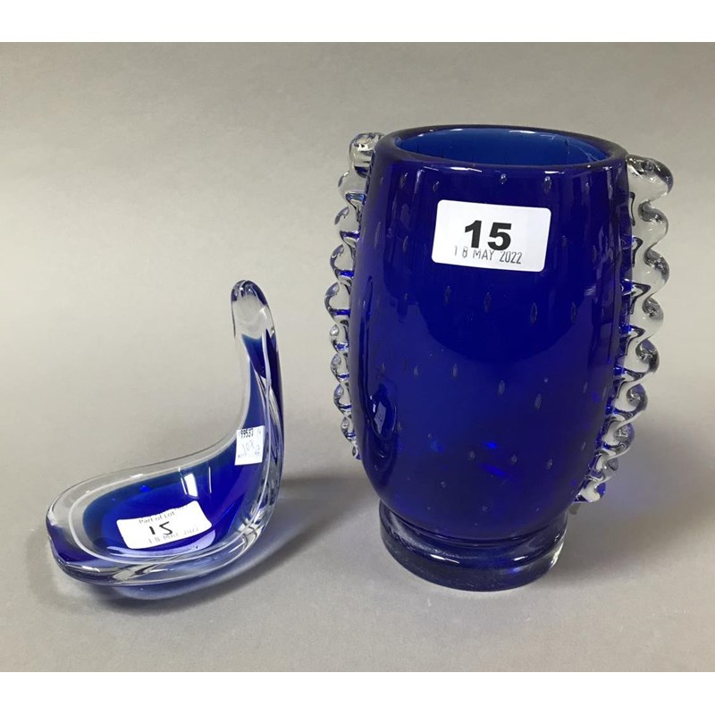 Blue Glass Orrefors Vase and Dish (2), Height of Vase 18cm