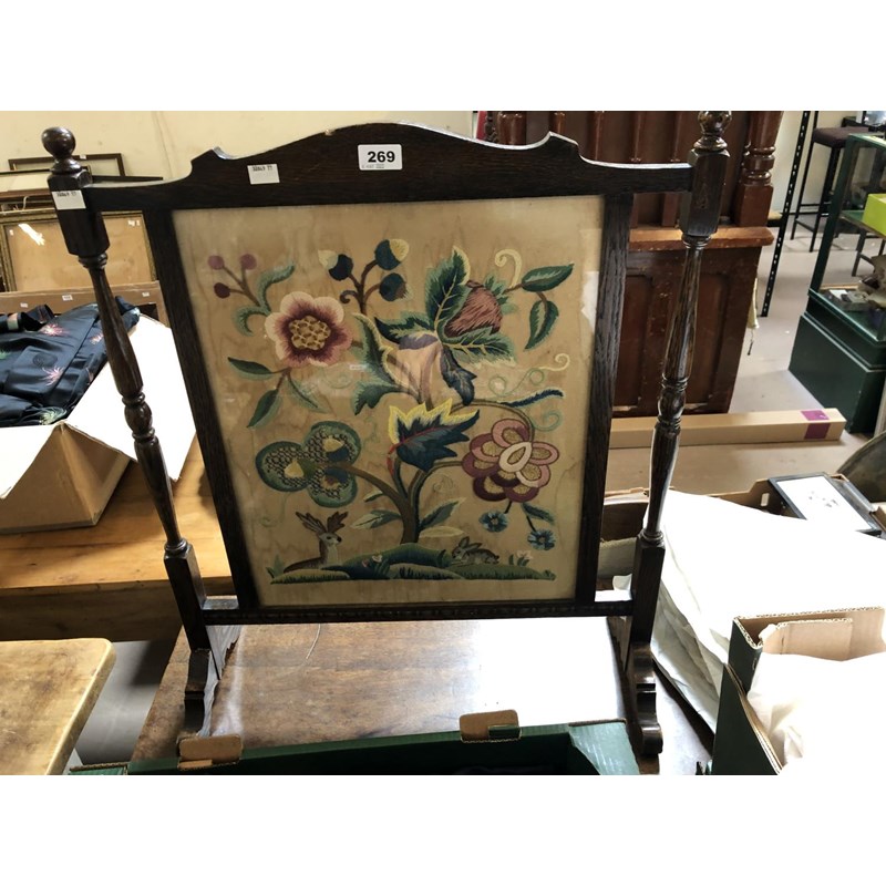 Oak Surround Tapestry Fire Screen, Height 73cm .
