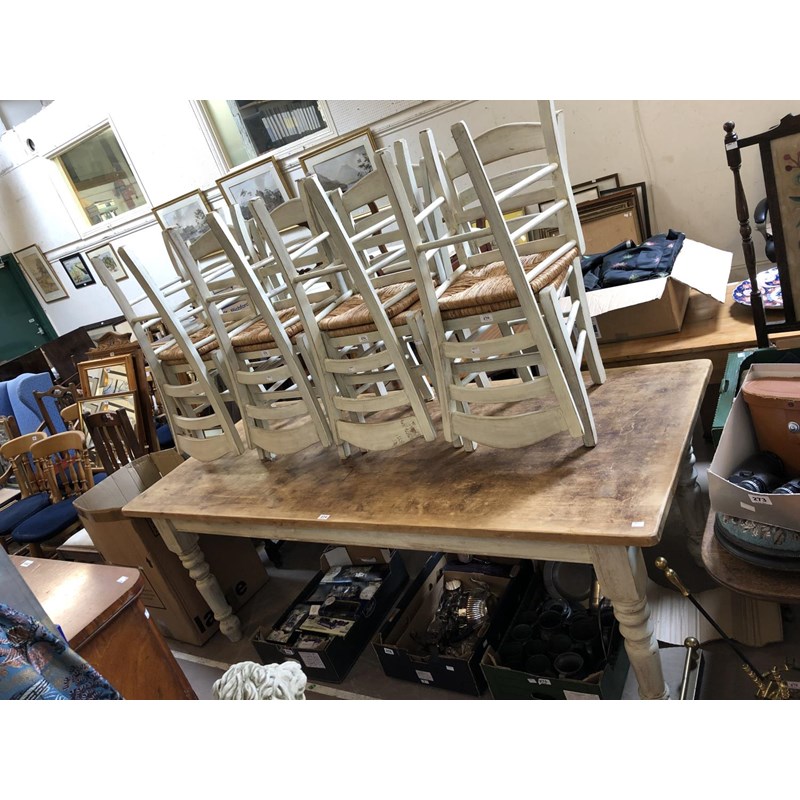 Large Painted Pine Farmhouse Dining Table with Eight Chairs