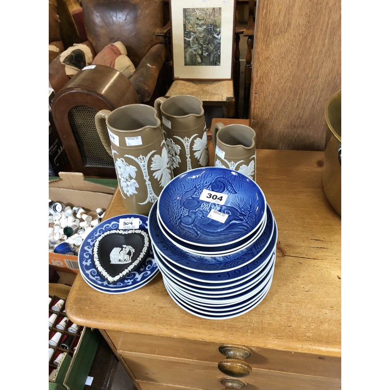 Set of Three Graduated Wedgwood Jugs, Copenhagen Collectors Plates, etc