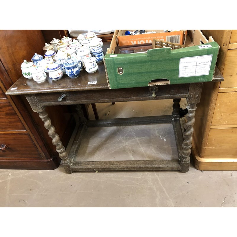 Oak Side Table with Drawer on Barley Twist Legs, H71cm, L94cm, D14cm