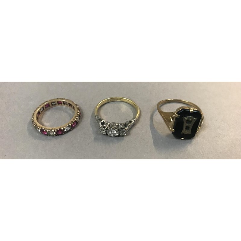 18ct Gold Ring Set with Three Diamonds, Eternity Rings and Mourning Ring (3)