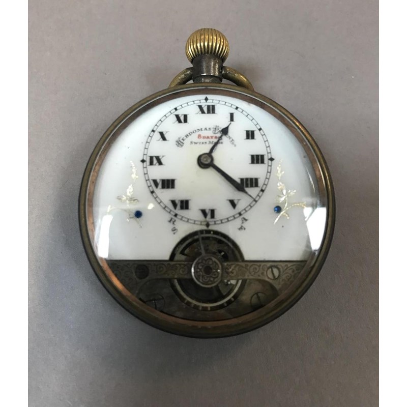 A GUN METAL 8 DAYS POCKET WATCH the white enamel dial signed Hebdomas Patent, with Roman numerals, 50mm dia