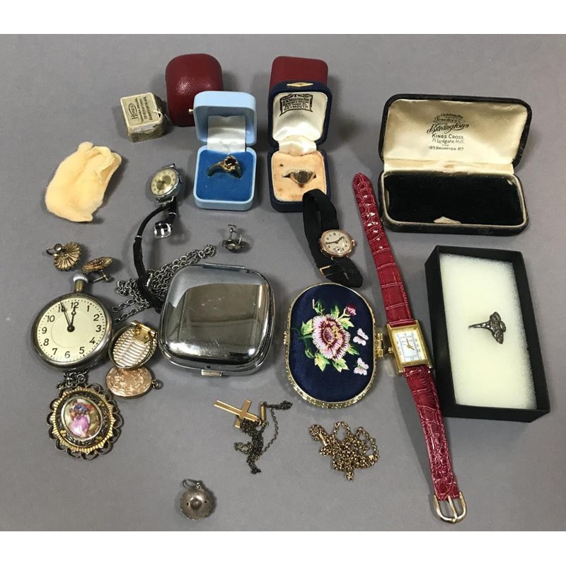 9ct Gold Wristwatch, 9ct Gold Chain and Other Costume Jewellery