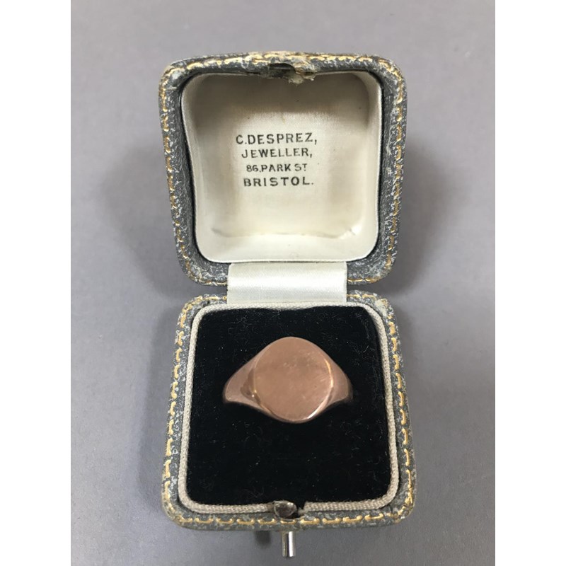 Great War Period 9ct Rose Gold Signet Ring, Hallmarked B'Ham 1916, (in Ring Box) 4.8g
