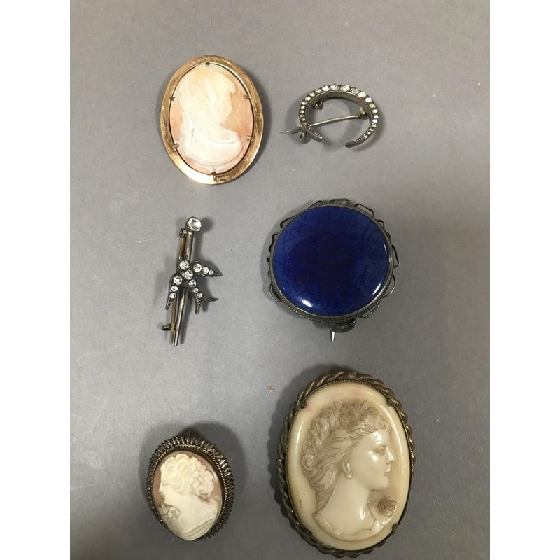 Ruskin Enamel Brooch, Cameo Brooches and Others