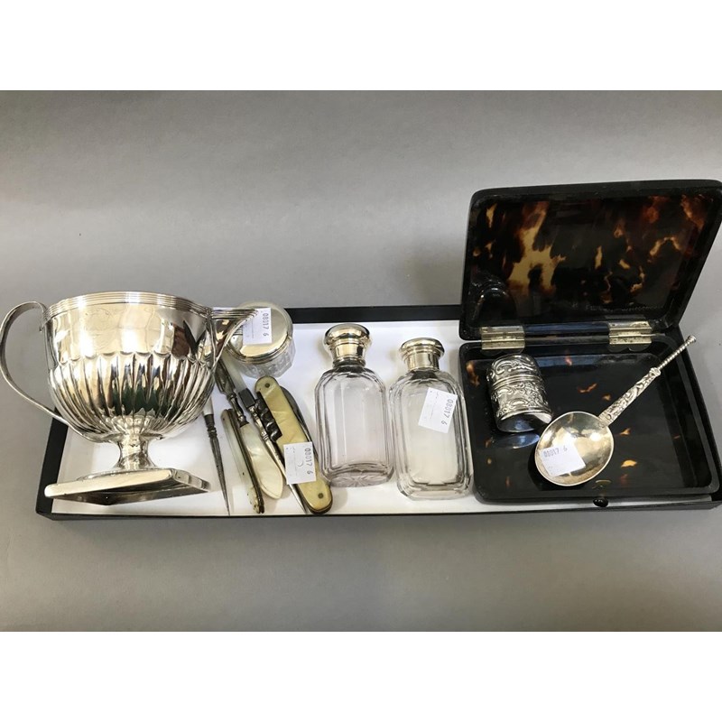 Antique Silver Cream Jug, Spoon Bottles, Box etc (lot)