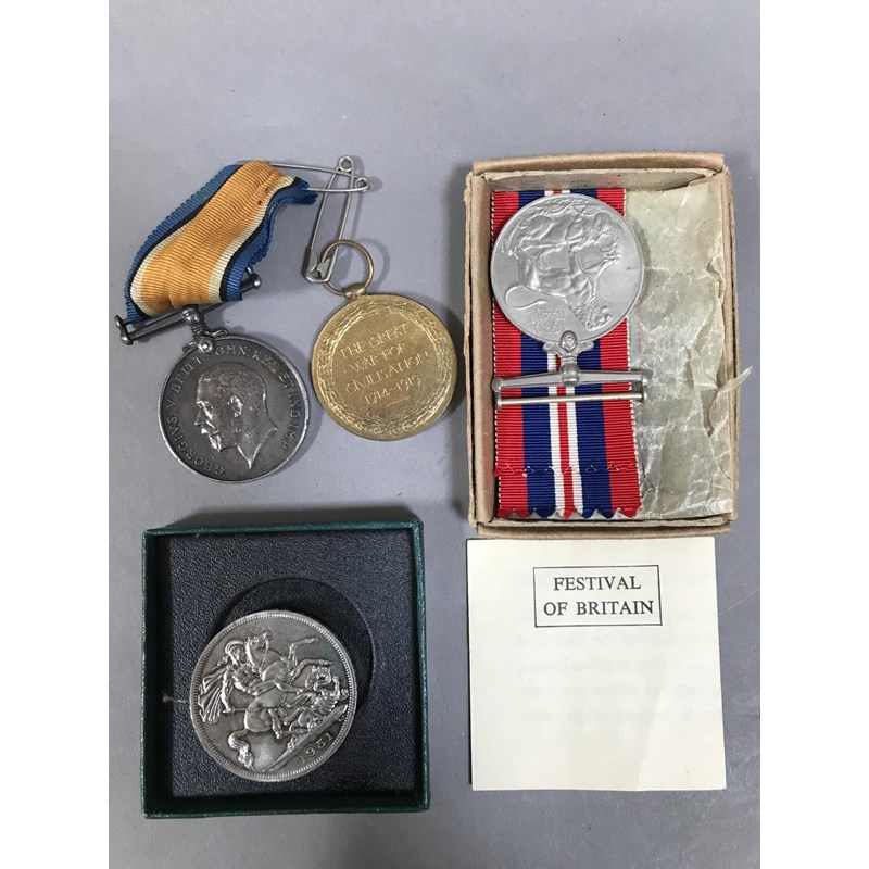 Two 1st WW Medals (R H Jeanes), a 2nd WW Medal and a 1951 Coin