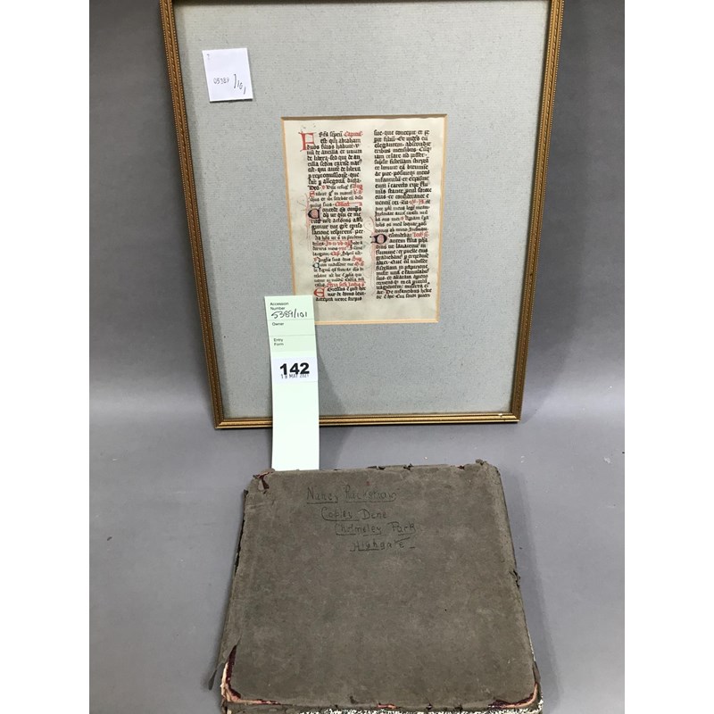 Album of Amateur Watercolours, c.1900 and a Leaf from an Early Religious Manuscript, framed