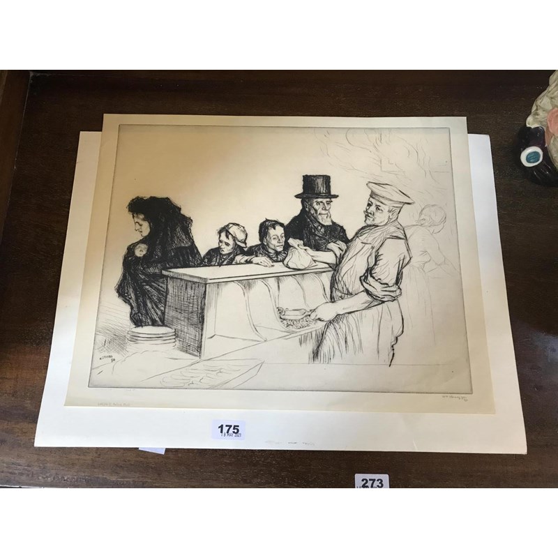David Strang/William Strang, `Fried Fish` etching (1912), signed by D Strang, restrike, unframed