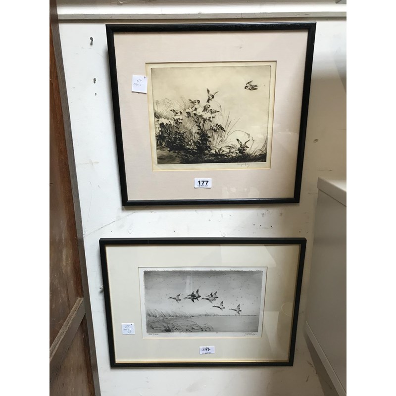George Soper signed etching of Goldfinches; and another signed etching (2)
