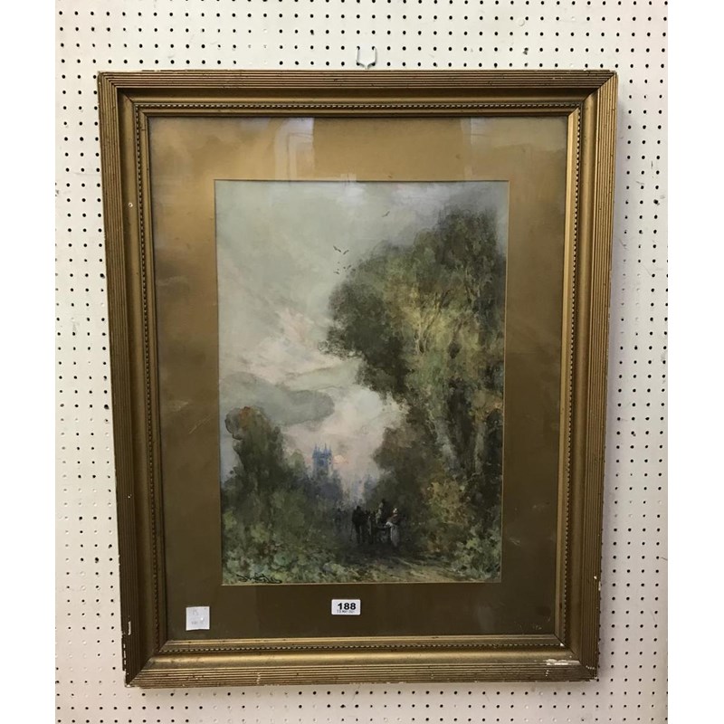 Watercolour of a Cart Heading Towards a Town, by Frank Wasley