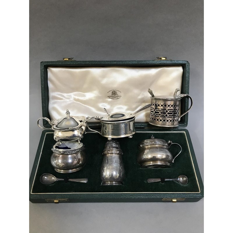 Cased Set of Three Silver Condiments and Other Silver Loose Condiments