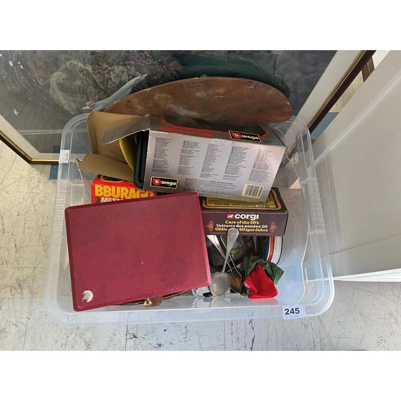 Box of Assorted Collectables, Binoculars, Model Cars, Tins etc