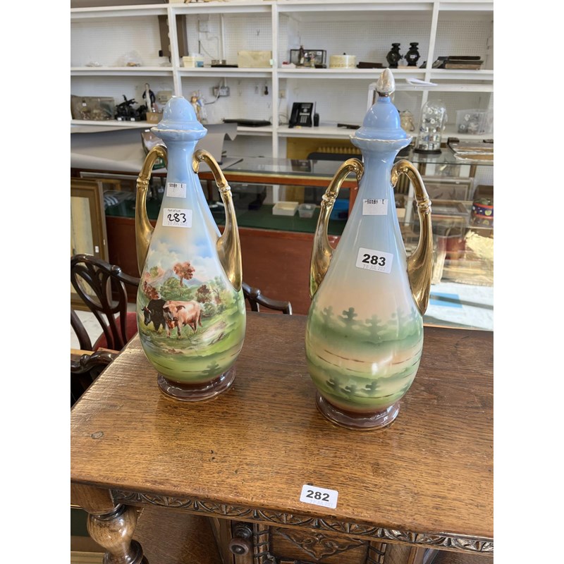 Pair of Austrian Porcelain Two Handled Vases and Covers