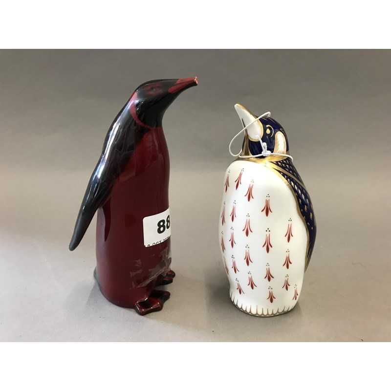 Royal Crown Derby Penguin Paperweight and a Doulton Flambe Penguin (A/F)