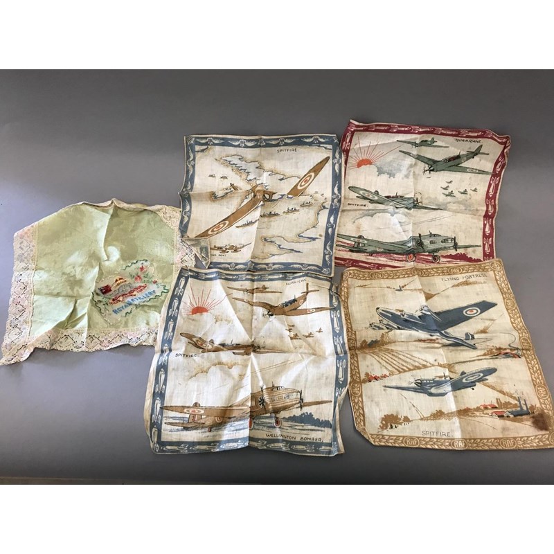 Four RAF Embroidered Napkins and a Royal Artillery Napkin
