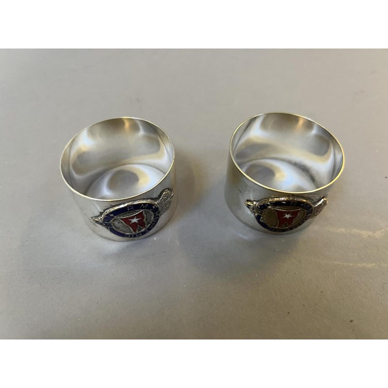 RMS Homeric - two silver plated napkin rings with enamel crest for RMS Homeric, White Star Line interest. These were collected by the vendors grandparents on the maiden voyage in 1922, so 100 years ago. RMS Homeric was formally a German ship Columbus, it was renamed by the White Star Line