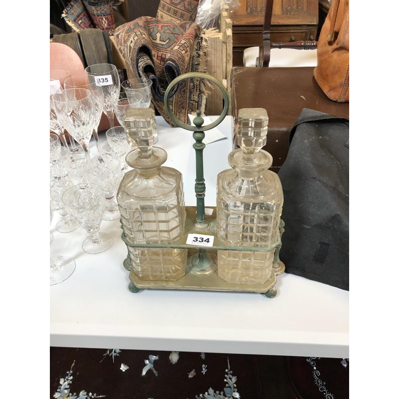 Metal Two Decanter Tantalus, Height 34cm