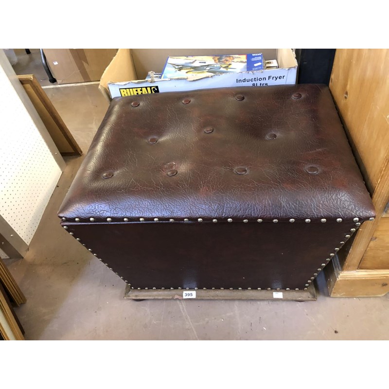 Victorian Leather Brass Studded Ottoman, Height 50cm