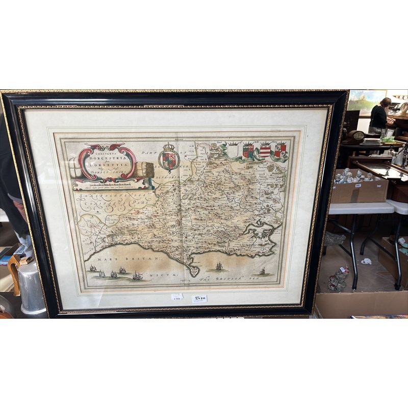 Map of Dorset, Hand Coloured Engraving, by Blaeu (1662 or later)