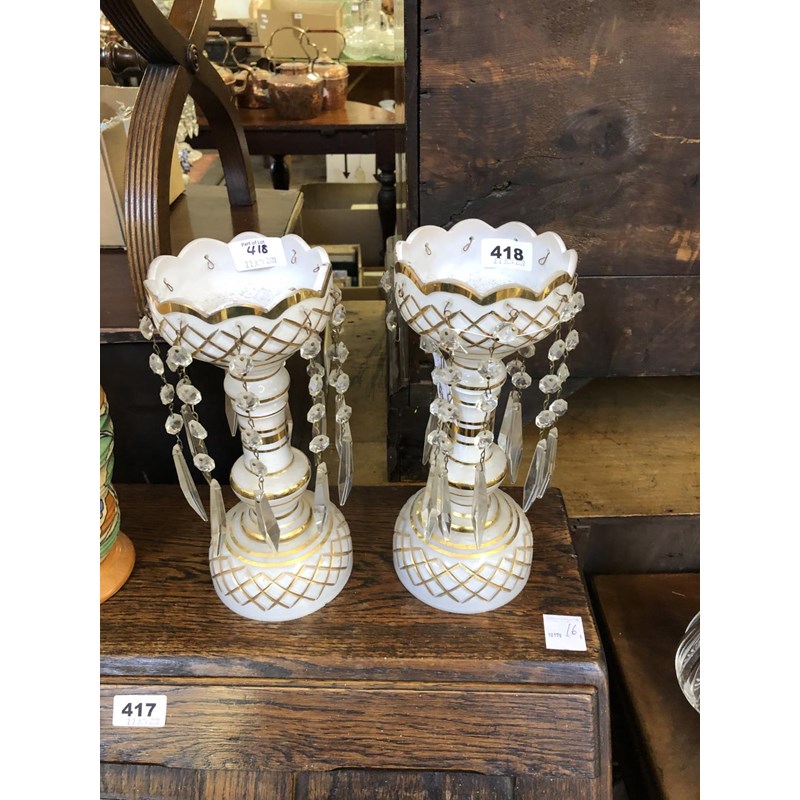 Pair of Gilt Glass Drop Lustre's, Height 27.5cm