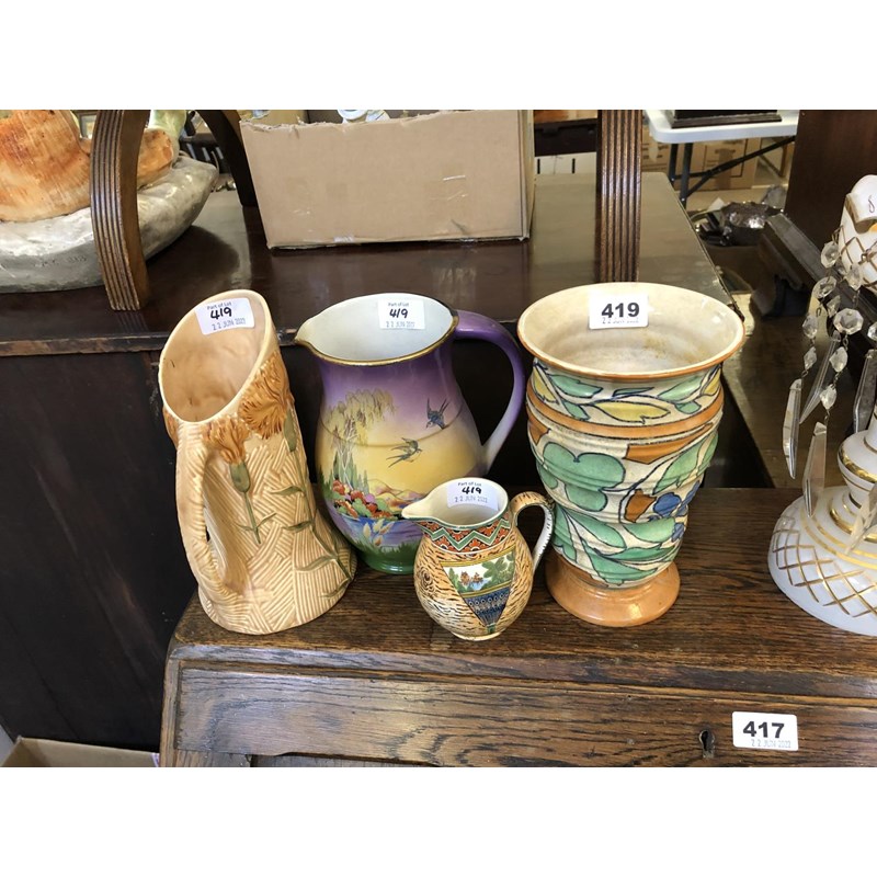 Wedgwood African Pattern Milk Jug, Burleigh Jug, Burleigh Vase and Another, Height of Tallest 22.5cm