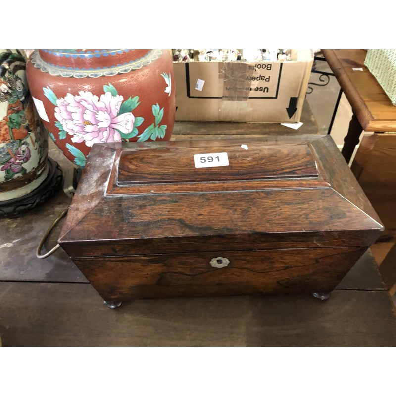 Regency Rosewood Sarcophagus Tea Caddy with Mixing Bowl, H21cm, W34cm, D18cm
