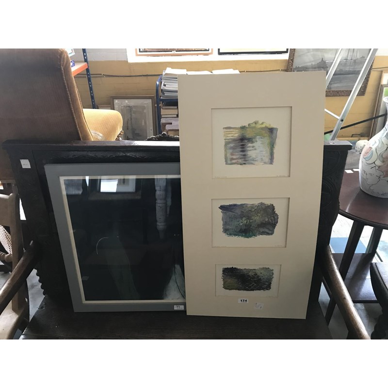 M Chilton, Blue Abstract, Chalks; and another (Three studies in one mount) (2)