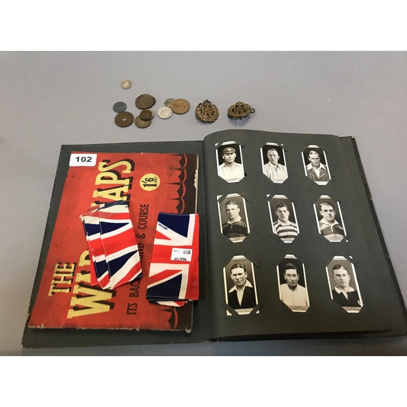 Album of Cigarette Cards, The War in Maps, Two Flags and Coins, Two RAF Badges etc