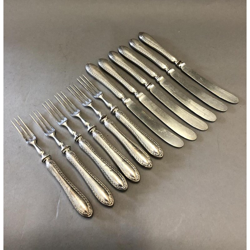 Set of Twelve Silver Fruit Knives and Forks